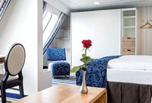 How about a relaxing afternoon on your own balcony? In our Junior Suites on Deck 10, you can enjoy the sea noise on the 8 sqm balcony with table and two chairs. The Junior Suite accommodates up to 4 persons (2 beds and a sofa bed or double bed couch) in a 26 m² living space - to switch off and to feel good. The beds of the junior suites balcony can not be disassembled.