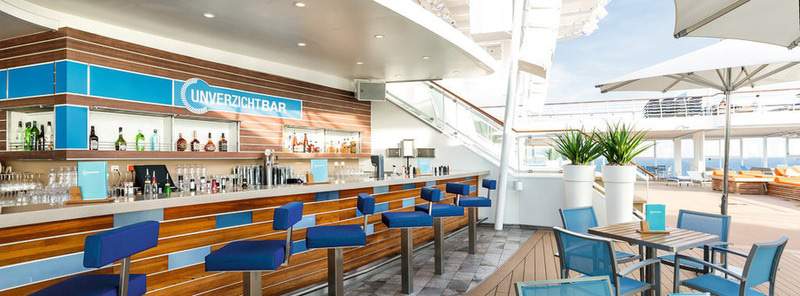 In a relaxed atmosphere around the pool, you can go to the Unverzicht bar on the Mein Schiff 6 all day. How about a fruit cocktail at the first sunbath, a cool beer in the evening hours or a glass of wine after eating under the open air? For evening pool parties with samba or reggae music, this bar is a popular and indispensable meeting place. Do not miss this versatile offer!