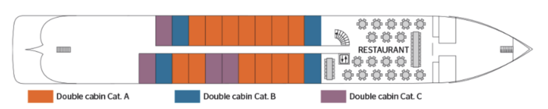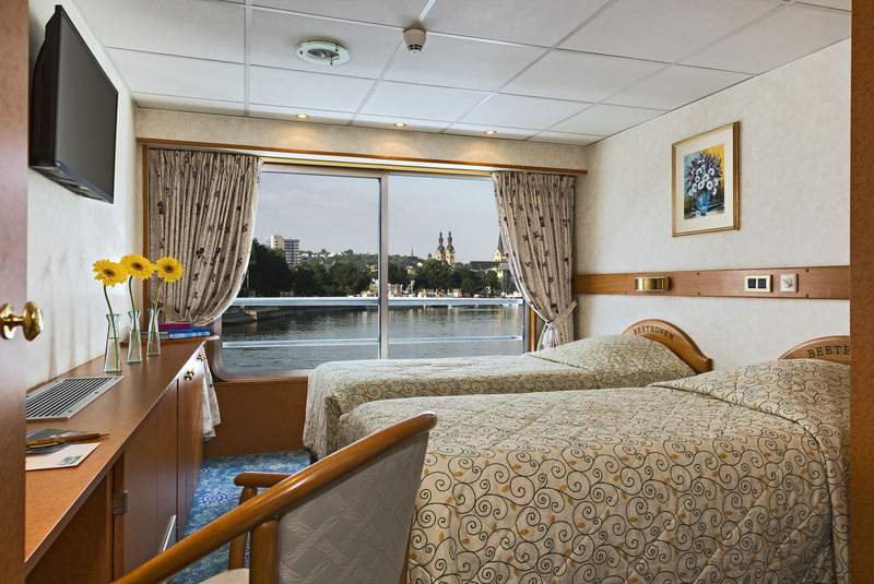 Sailing the Danube and Rhine, The MS Beethoven was built in 2004 and further refurbished in 2010. The 3 Deck ship is 110m in length, 11.4m in width and can accommodate up to 108 passengers comfortably in the 90 cabins onboard.