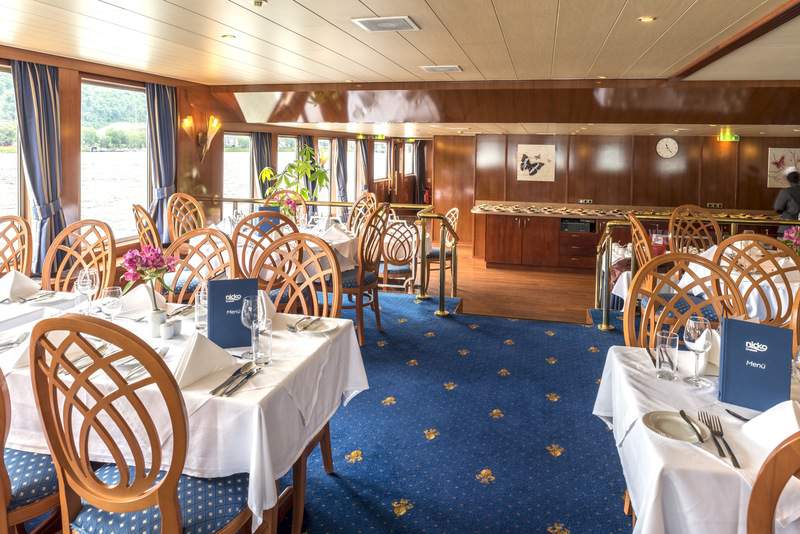 We will serve you delicacies from the region and around the world with flexible mealtimes in the main restaurant. The multi-course menus will be lovingly prepared and brought to your table. By the way, these are available every day and at any mealtime. The light walls and large windows make this area of enjoyment one of the most light-flooded places on the entire ship. The most beautiful river panorama is always included.