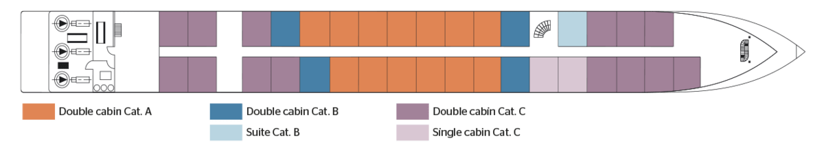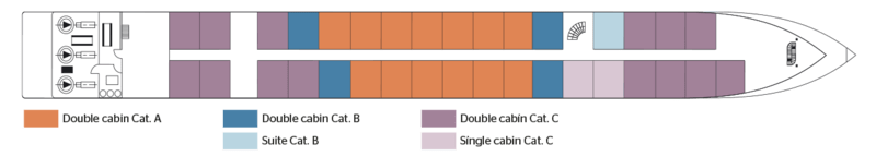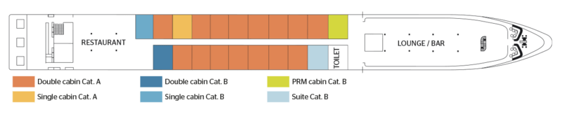 | Launch year | Refit year | Language | Gross tonnage | Length | Width | Currency | Speed | Capacity | Crew count | Deck count | Cabin count | Large cabin count | Wheelchair cabin count | Electrical plugs |
