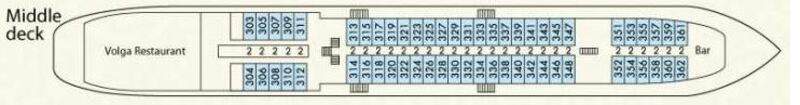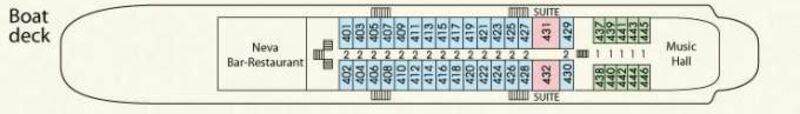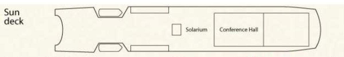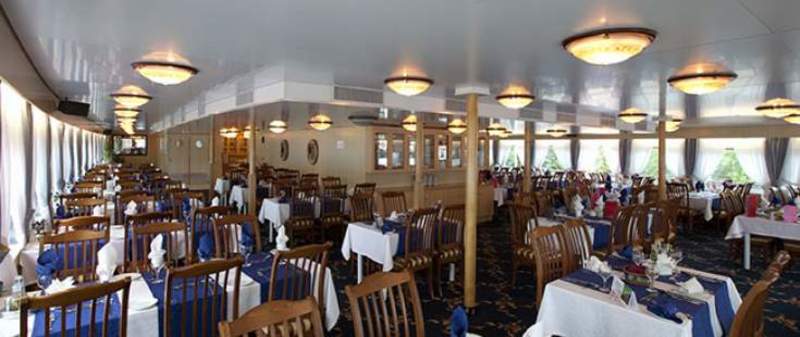 The ship features outside staterooms, with majestic views of the passing countryside; restaurant; two bars; souvenir shop; music room; dance hall; sauna and solarium. Laundry service is also available.