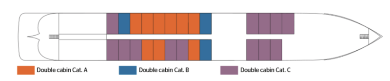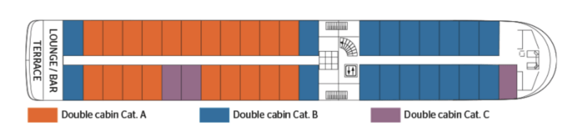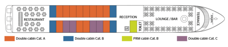 | Launch year | Language | Gross tonnage | Length | Width | Currency | Speed | Capacity | Crew count | Deck count | Cabin count | Large cabin count | Wheelchair cabin count | Electrical plugs |