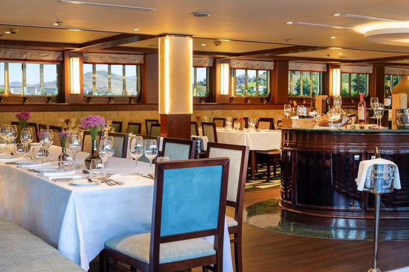 Located on the lower deck, the charming restaurant offers a range of local Portuguese delicacies, or international dishes to suit all tastes, accompanied by fine wines from the world-famous grape-growing region through which you will be travelling.