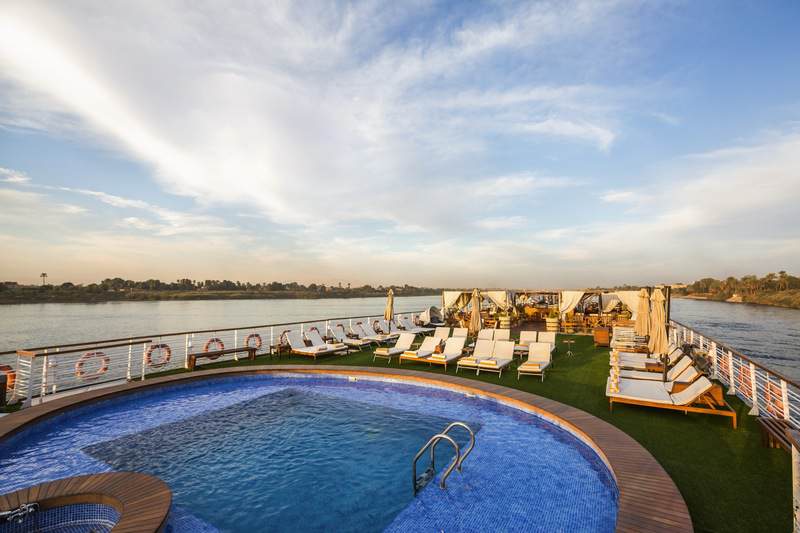 In Arabic, Farah means Happiness and Joy. In keeping with the Avalon difference in keeping our guests happy from start to finish, your Nile River cruise features the MS Farah river cruise ship-one of Egypt’s most elite ships on the Nile. Cruise in style and comfort, while enjoying the mysterious and magnificent sights and experiences only found in the Egyptian landscapes. The MS Farah ship offers 60 deluxe cabins and 2 Royal Suites that feature style and comfort with oversized windows that are virtually wall-sized. Deluxe staterooms feature spacious, well-appointed bathrooms with the luxury you crave-including a full bathtub. Like the Farah’s impeccable staterooms, her Royal Suites are sleek and comfortable with the finest of amenities, while featuring a separate, comfortable sitting area with its own immense sliding window. Enjoy ample closet space, mini bar, Internet, hair dryer, individual climate control, smoke detector and sprinkler system safety features, personal safe, LCD television, personalized pillow selections, and handmade Egyptian cotton sheets. Avalon insists on the best view and the best crew to treat you like royalty while exploring the treasures of the pharaohs on this Nile River cruise!