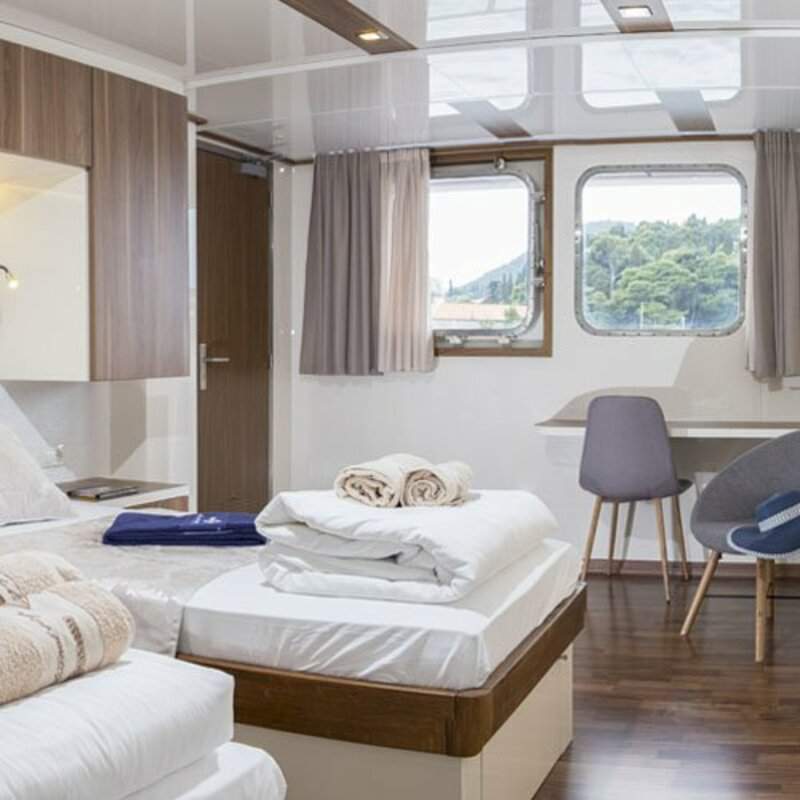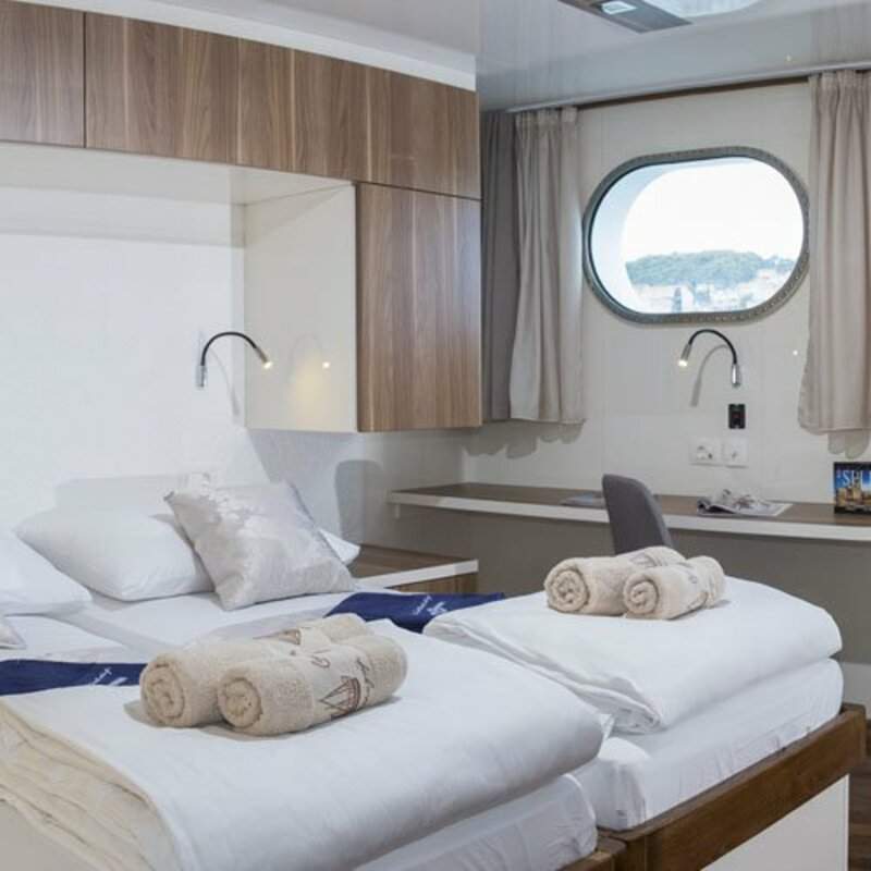 Welcome aboard the magnificent MS Il Mare. This superb addition to our Croatian fleet, is sure to become a real favourite. Launched in 2019, incorporating the very latest design innovations, she was exclusively commissioned to sail the stunning waters of the Dalmatian coast. This most majestic of vessels, at an impressive 48 metres, causes quite a stir as she moors in the unspoilt little ports along this captivating stretch of the Adriatic. A low passenger complement of just 40 guests creates a sense of exclusivity, yet the gracious and friendly crew, trained to the highest standards, ensure a relaxed and sociable on-board atmosphere, where nothing is too much trouble.