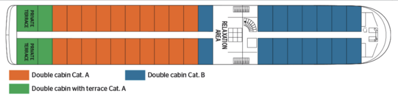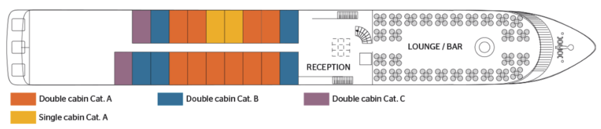 | Launch year | Refit year | Language | Gross tonnage | Length | Width | Currency | Speed | Capacity | Crew count | Deck count | Cabin count | Large cabin count | Wheelchair cabin count | Electrical plugs |