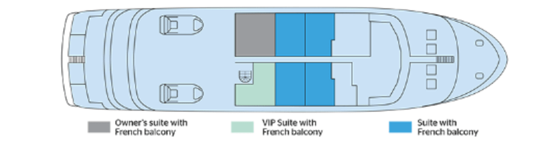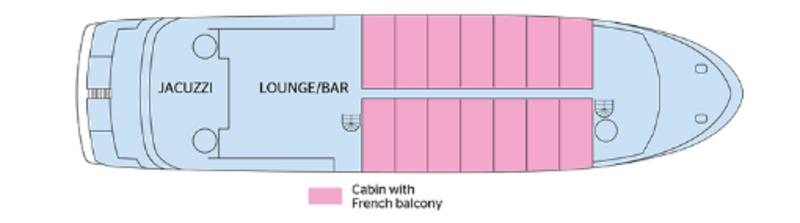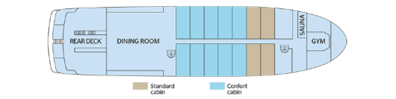 On board you will find a solarium lounge on the sundeck, and a lounge bar on the upper deck.