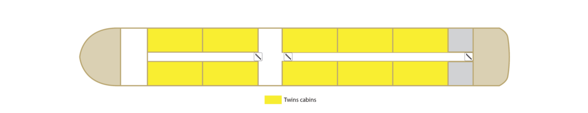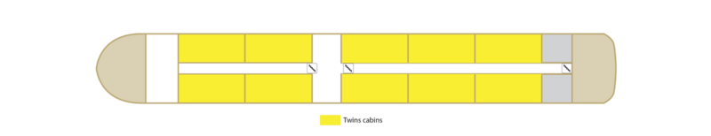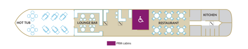 | Launch year | Refit year | Language | Gross tonnage | Length | Width | Currency | Speed | Capacity | Crew count | Deck count | Cabin count | Large cabin count | Wheelchair cabin count | Electrical plugs |