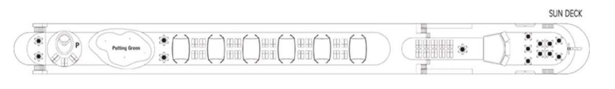 Fitness centre; massages available; putting green on Sun Deck; Jacuzzi on Sun Deck – available 24 hours