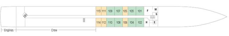 Of the 67 cabins, we offer 22 Tauck Suites of 300-square-feet and additional amenities including roomy walk-in closets and spacious bathrooms.