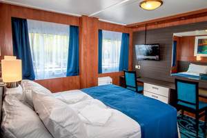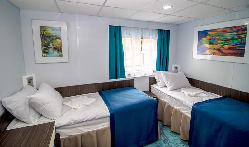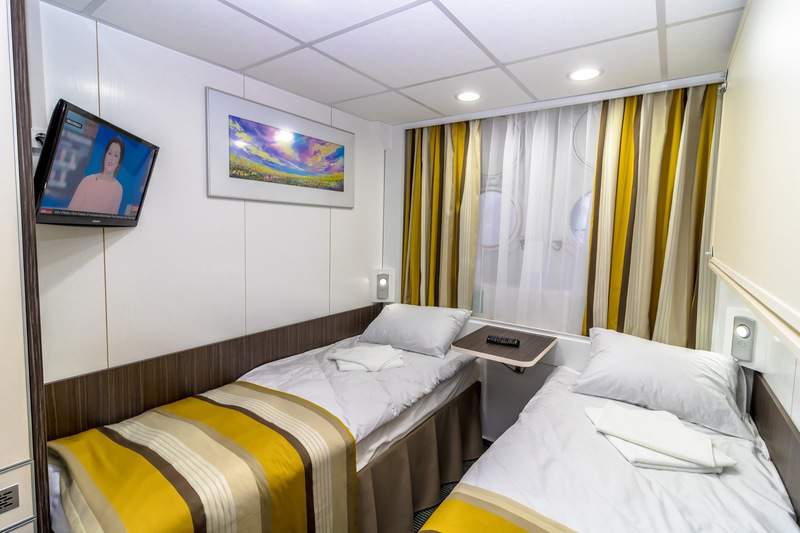 The ship's suites and staterooms are spacious, offer heating and air-conditioning, a hairdryer, safe, TV and an ensuite with a shower. Selected rooms offer large scenic windows so you can watch Russia float by from the comfort of your private room.