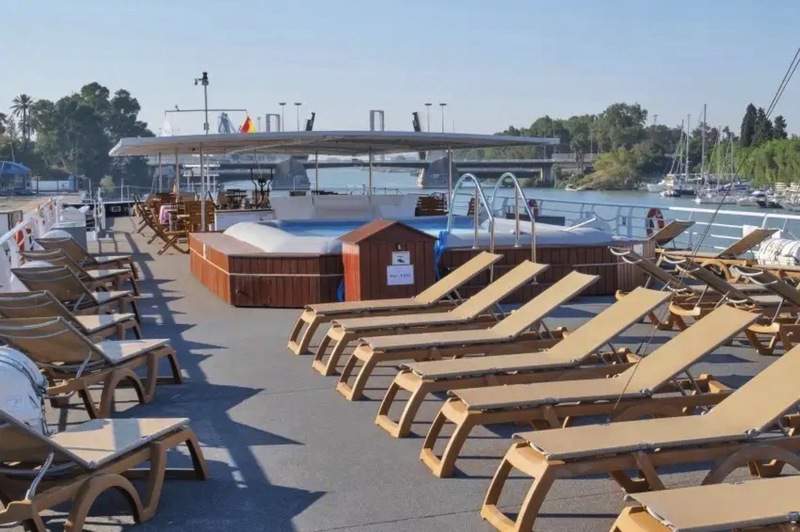 MS La Belle de Cadix sails on the Guadiana, the Guadalquivir and along Atlantic coast. Refurbished in 2010, she has 88 luxury cabins, offering passengers beautiful 360* panoramic views of the unique historic and artistic heritage.