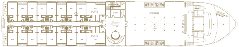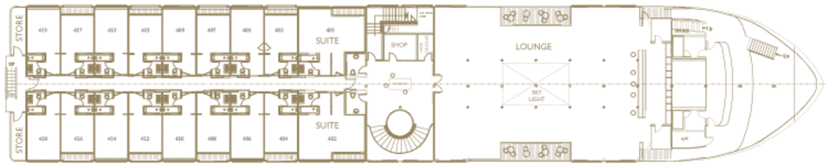 An all-suite cruise ship, the Sonesta Star Goddess features 33 suites named after famous composers, giving it a touch of elegance and sophistication. The ship comprises 27 deluxe Beethoven Suites (each 40m), 4 lush Mozart Suites (each 35m), and 2 superior Chopin Suites (each 52m). Each of the 33 suites has a private terrace and is designed to offer maximum comfort and space.