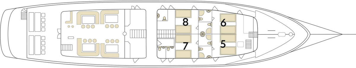 With just 15 cabins available for 30 guests, the atmosphere on board is convivial and relaxed with a touch of exclusivity – and you’re assured a first-class service throughout.