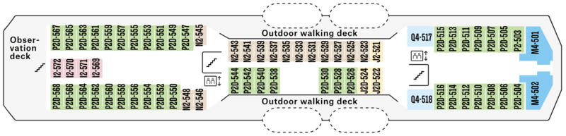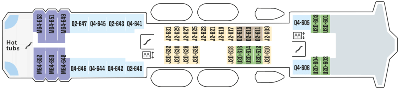 – The gym on deck 7 is bigger, the sauna upgraded and two aft-facing outdoor hot tubs are added.