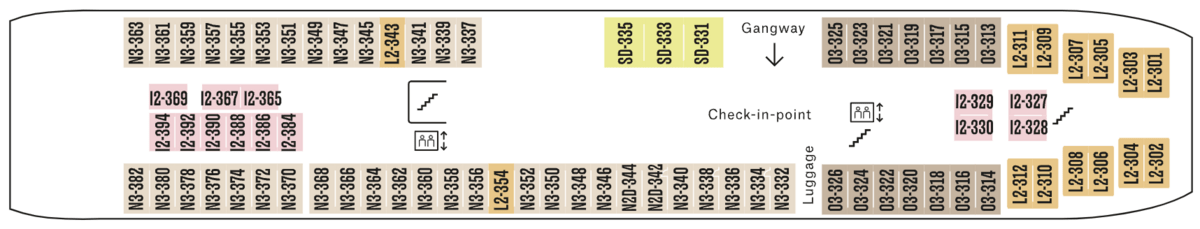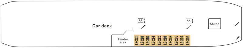 Launch year | Refit year | Language | Gross tonnage | Length | Width | Currency | Speed | Capacity | Deck count | Cabin count | Wheelchair cabin count | Electrical plugs |