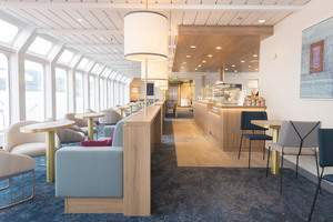 MS Nordnorge was refurbished in 2016 and now features a modern, Arctic-inspired interior. On board are three different restaurants, the Multe bakery and ice cream bar, a sauna and fitness room. Out on deck you can enjoy the view from one of our two Jacuzzis. We have a comfortable bar at the front of the ship where you can enjoy a nice traditional drink. The vessel also has a large compass area were you find the reception, a tour guide, conference room and shop.