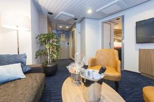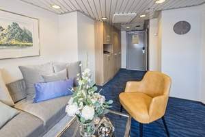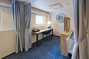 Our Expedition suites are the most luxurious cabins on the ship. Situated on the upper deck of the ship, the cabins feature seating areas with TV, bathrooms with shower/WC, and most with double beds. Some suites have more facilities than others.