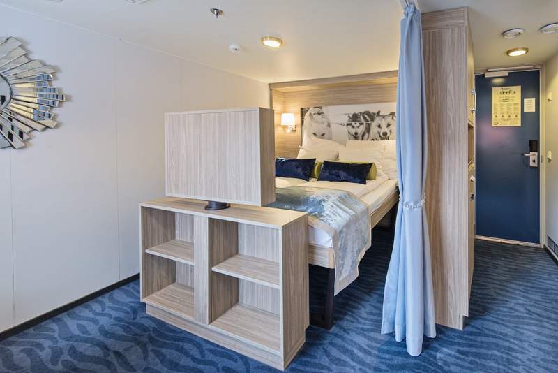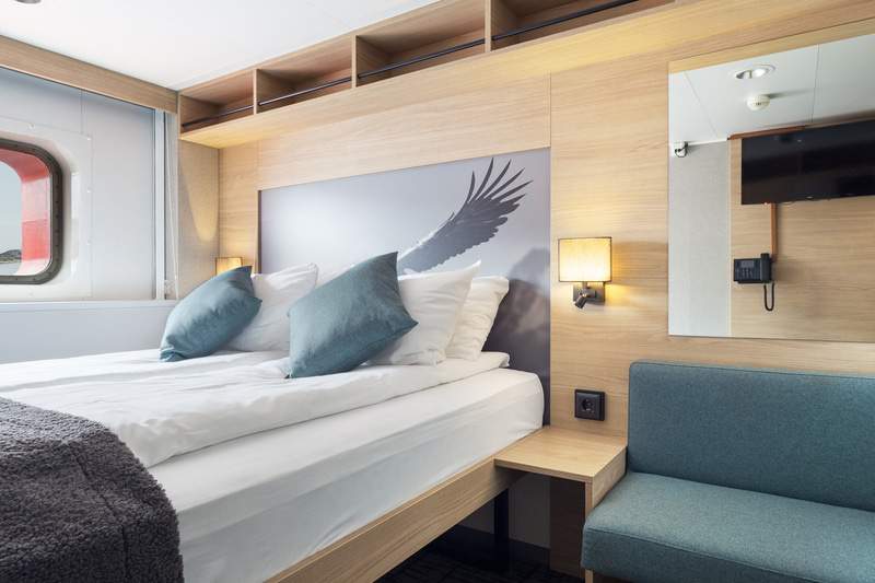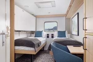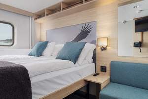 Relaxation and comfort are the hallmarks of our Arctic superior cabins on the upper and middle decks. All of the cabins have bathrooms with shower and WC, and are equipped with tea and coffee-making facilities. Most cabins have double beds. All the cabins have individual specifications.