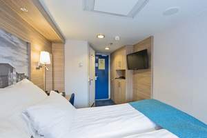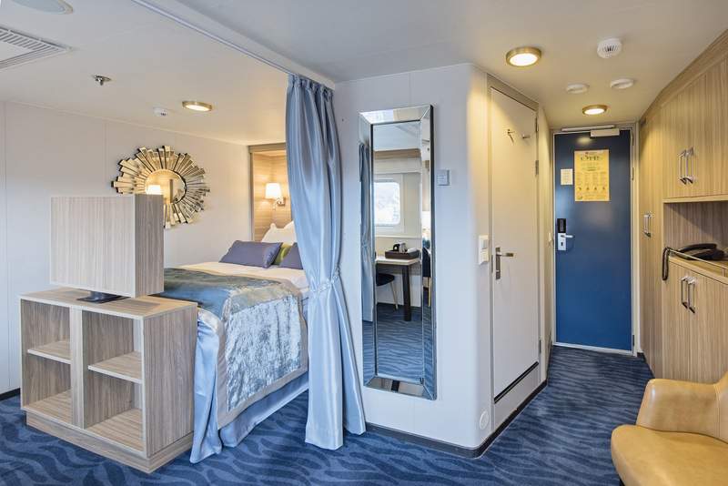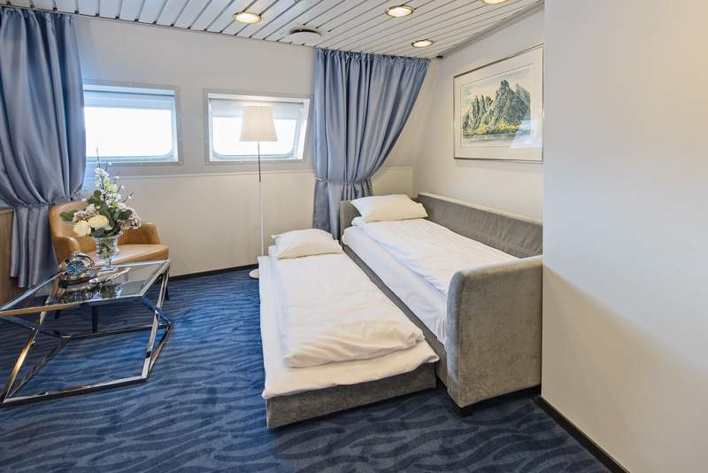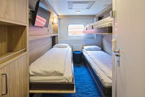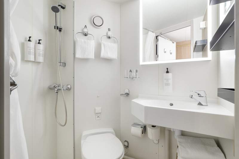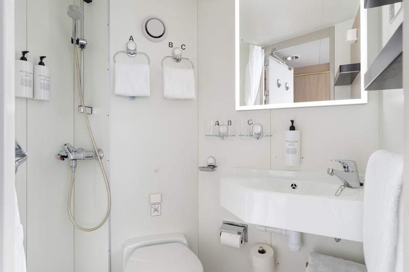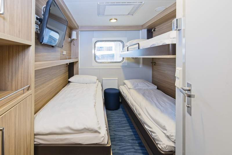 Our Polar outside cabins are situated mostly on middle or lower deck and all have bathrooms with shower/WC. Some have double beds, while others offer separate beds, one of which is a sofa bed, or upper and lower berths. All the cabins have individual specifications.