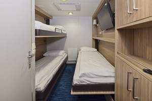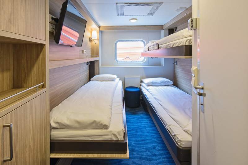 Our cosy Polar inside cabins are on all decks and include bathrooms with shower/WC. Most of the cabins have separate beds with one doubling as a sofa. Some are equipped with upper and lower berths. All the cabins have individual specifications.
