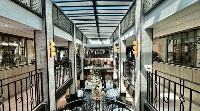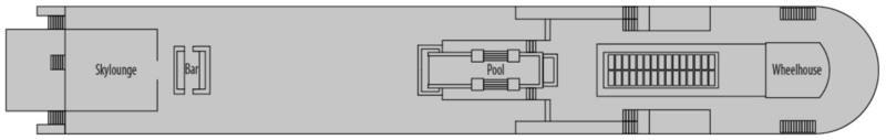 The sun deck is a space to unwind, enjoy a drink in the sky lounge, and chat with fellow adventurers. And when the weather gets too warm, cool off in the pool or relax on a lounger – all while admiring the panoramic vistas.