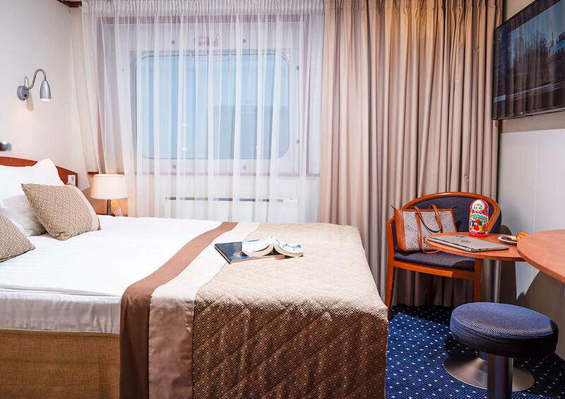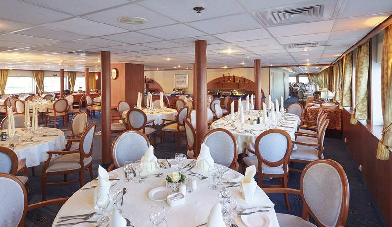 Built to navigate the waterways of Russia, your traditional river cruise ship comprises four generously sized decks with plenty of space for relaxing, dining and enjoying the views. Admire the spectacular sunsets and ever-changing riverside scenery from the Sun Deck, where there are plenty of outdoor chairs and sun loungers for you to unwind in comfort. After a day’s sightseeing, why not enjoy an aperitif before dinner in the terrace area of the Tsar Bar or at the President Bar, with its magnificent panoramic windows, plush armchairs and relaxed, welcoming ambience.