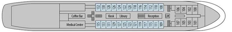 All cabins are air-conditioned and offer either two single beds or a queen-size bed as well as a private bathroom with a bathtub and hairdryer. Further amenities include an LCD television, minibar and two life jackets for your safety.