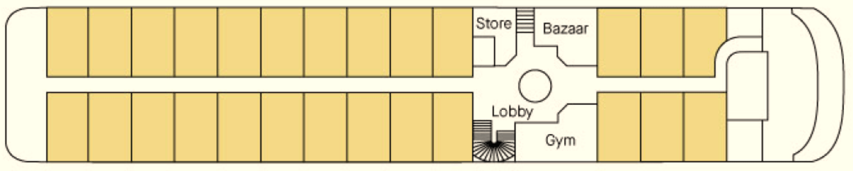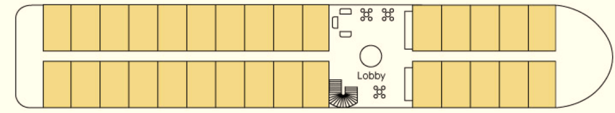 | Refit year | Language | Length | Width | Capacity | Crew count | Deck count | Cabin count | Large cabin count | Electrical plugs |