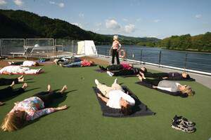 Cabin beds are fitted with 400-thread satin bed linen, mako cotton pillows, 100% cotton blankets and thick pillow top mattresses. A variety of Tauck-exclusive Molton Brown bath products are provided along with terry cloth robes, towels and hair dryers.