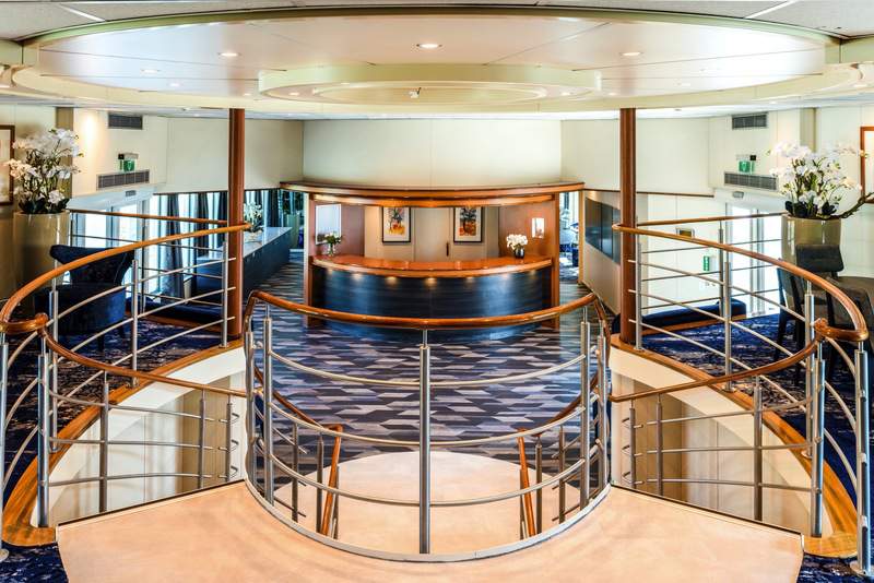 Elsewhere on the upper deck you will find the library and the gift shop, plus the shore excursion and cruise director’s office. Hidden away at the foot of the atrium is another small lounge in the lobby that’s an extra space for quiet contemplation.