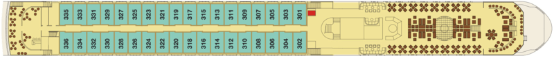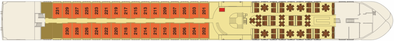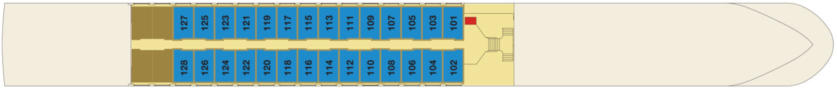 | Launch year | Language | Length | Currency | Capacity | Crew count | Deck count | Cabin count | Large cabin count | Wheelchair cabin count | Electrical plugs |