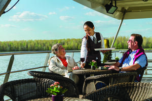 From her distinct claret and cream colours on the outside, to the polished interiors and exquisite meals – there’s an air about this ship that exudes style and yet the atmosphere is warm and friendly. There’s also plenty of space to gather with friends and chat over drinks or enjoy some quiet time in your own company. Even the cabins are an inviting space to relax, with those on the Panorama Deck offering excellent river views from a French balcony.
