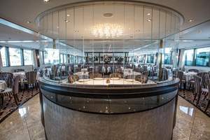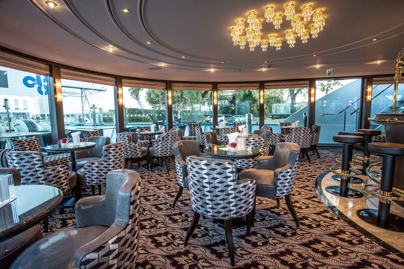 The Diamond Deck is where you will find the very heart of the ship - the superb panoramic observation lounge and bar; a lounge in every sense of the word, complete with plenty of comfortable leather armchairs and sumptuous sofas where you can sink into warmly colourful cushions in beautiful quality fabrics with a freshly made cup of tea. A thick wool carpet feels lovely underfoot and the tasteful contemporary lighting above creates a welcoming and refined ambience, further complemented by the discreet and intuitive service resplendent of the finest five-star hotels. So just sit back with your favourite cocktail and take in the truly mesmerising view.
