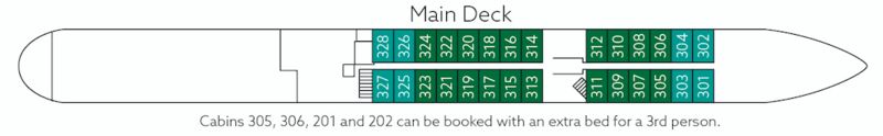 The tasteful ambient, a particularly high level of comfort in the spacious and stylish cabins as well as the large wellness area with sauna, whirlpool and relaxing area guarantee nothing but holiday – from the very first
