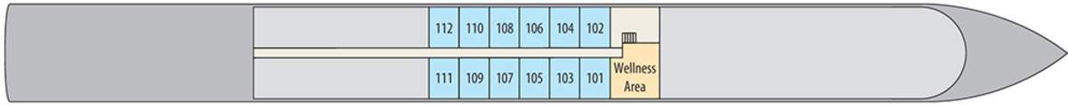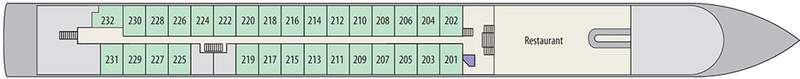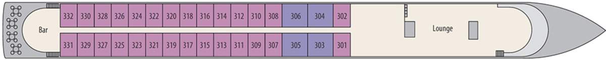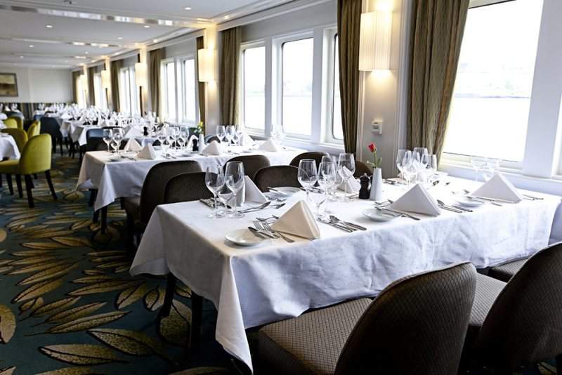 Superb attention to detail continues outside the vessel, where the extensive use of glass and polished stainless steel complements her sleek modern profile perfectly. As the ship glides, serenely, through the water, she truly is a wonderful sight to behold! As you would expect, the ship also incorporates the very latest in modern construction techniques and safety systems, ensuring your cruise is as comfortable and secure as possible. Finally the ship carries just 140 passengers and with 35 crew, a 4:1 ratio ensures excellent service levels. With many similar size vessels carrying 180 passengers or more, you will find the extra space, especially in the restaurant, very noticeable indeed.