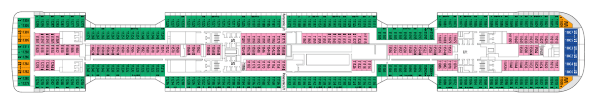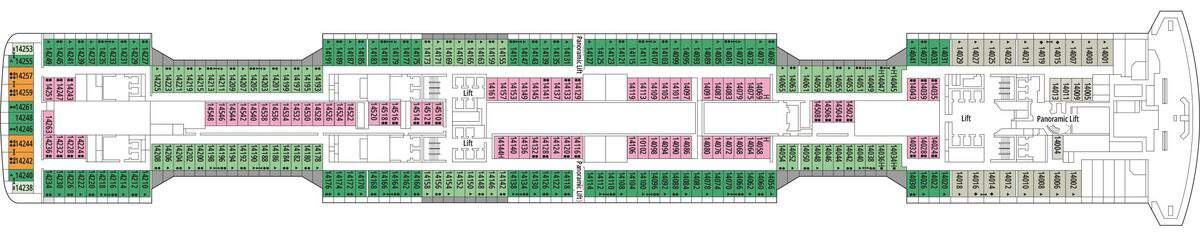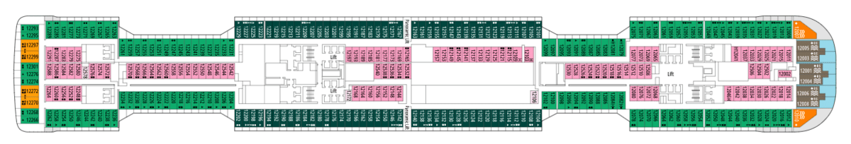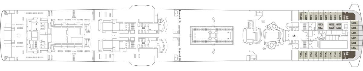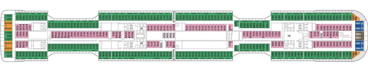 - Surface 59 sqm with a balcony 23 sqm, deck 9-12, with dining table and private whirlpool bath