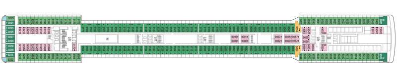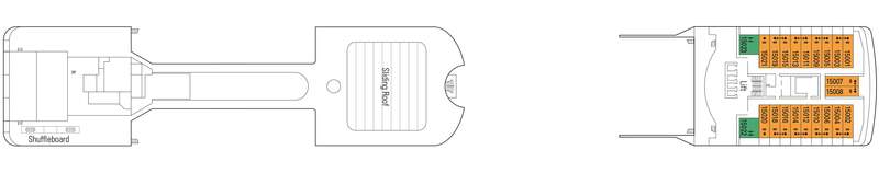 With a live DJ and open from 11.00pm until late, the ship's disco located on deck 14 and served by its own bar. It has seating for 172 guests.