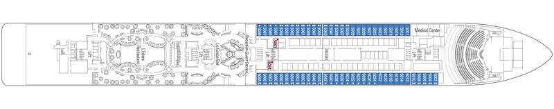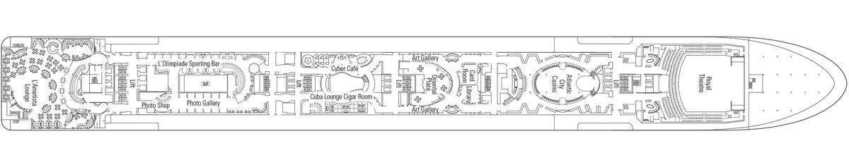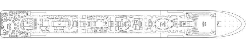 The 220 seat Piano Bar on deck 6 is the ship's reception bar, featuring live piano music and accompanying orchestra.