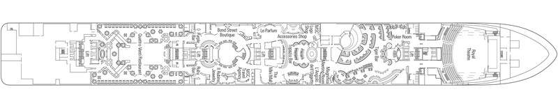 Evening entertainment is varied and includes a spectacular casino, disco, 4D cinema, cigar lounge, plush 1,200 seat theatre and live music in the bar lounges If you prefer a quieter evening, just step out onto the deck for a romantic drink under the stars.
