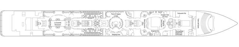 713 seat theatre, and the main show lounge onboard. Offers tiered seating, and features small-scale production shows and cabaret performances.