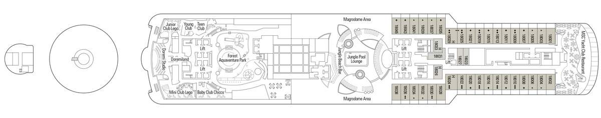 - Deluxe Balcony Aurea (best ship position, surface approx 17 sqm, balcony 9 sqm*, Deck 9)