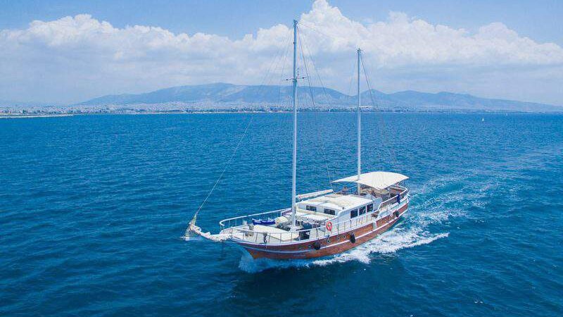These two wooden-hulled, almost identical twin-masted schooners were built in Turkey and are ideal for inshore cruising around some of the best sailing areas in Greece. Both have spacious open decks, ideal for sunbathing and informal drinks and lunches. With a maximum of just 16 guests and three crew on each boat, you can be assured of excellent personal service. All meals are served on the spacious aft deck, starting with a simple breakfast of pastries, cereals and fruit, followed by a relaxing buffet lunch, always prepared with fresh local ingredients. The deckhouse has a fully stocked bar and space to dine inside, should you wish. Complimentary tea and coffee are available daily. Since we will always overnight in port, you are free to find your favourite taverna for dinner. All cabins have either twin or double beds (some triples are available), are simply furnished and very compact with small portholes and private shower/WC.