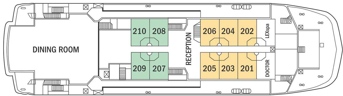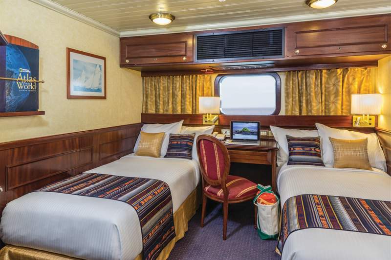 All 24 of Islander's cabins feature ocean view, either through windows, or glassed-in terraces. Cabins were designed with expedition in mind, offering ample drawer space in the desk and beneath the bed(s) so you can store any luggage you may have.