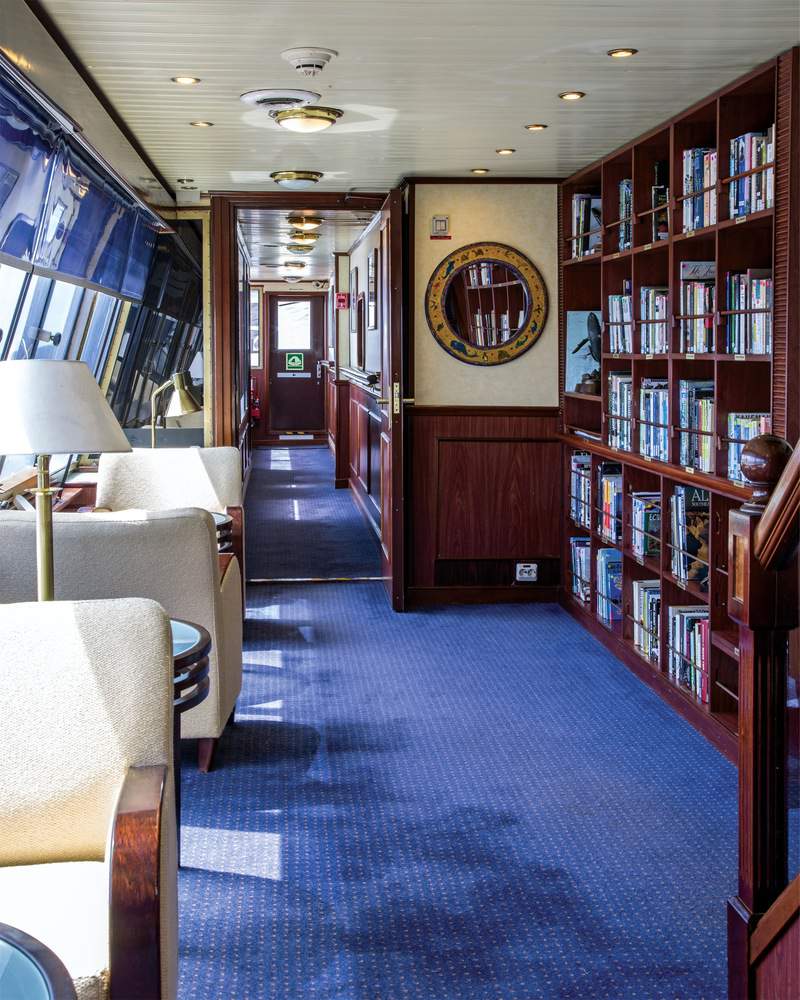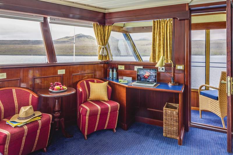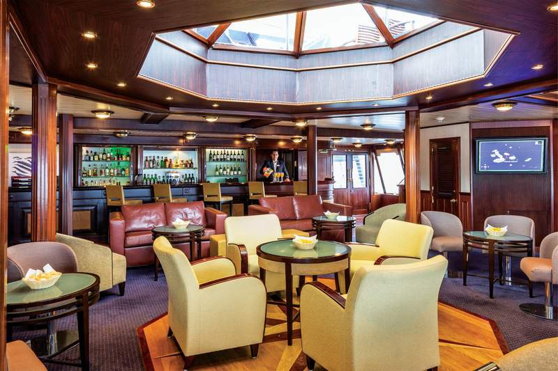 Islander offers a range of traditional entertainment amenities, including a Lounge, Bar, Library and shop. Some of them have a distinct expedition feels, as the shop sells items made by the people of Galapagos, and the Bridge is open to guests so they can survey the horizon.