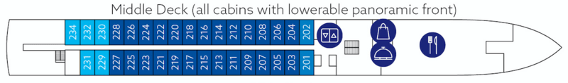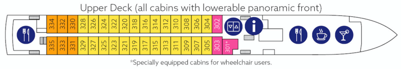 | Launch year | Language | Length | Width | Currency | Speed | Capacity | Crew count | Deck count | Cabin count | Electrical plugs |