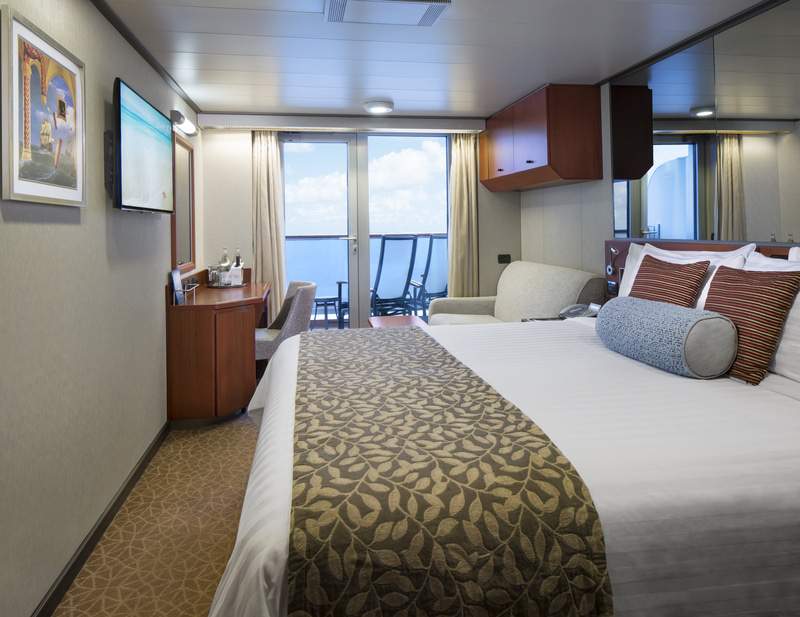 These staterooms feature spa amenities such as yoga mats and access to spa treatments from the Greenhouse Spa & Salon. Filled with light from floor-to-ceiling windows overlooking a private verandah, these staterooms include a sitting area, two lower beds convertible to one queen-size bed—our Signature Mariner's Dream™ bed with plush Euro-Top mattresses, and bath tub with premium massage showerheads.