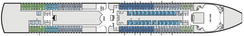 | Launch year | Refit year | Language | Gross tonnage | Length | Width | Currency | Speed | Capacity | Crew count | Deck count | Cabin count | Wheelchair cabin count | Electrical plugs |