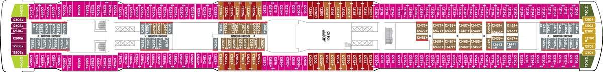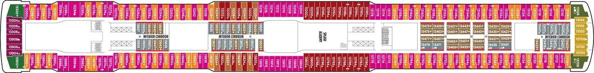 An affordable family option and conveniently located near our kids' area, these staterooms include two lower beds that convert to a queen-size bed and two pull-down beds. Some can connect to other staterooms, giving you even more room to spread out. (Door opens to centre interior corridor.)